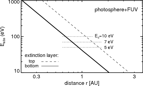 < 1 AU); whereas dissociation by hard photons (EUV and
