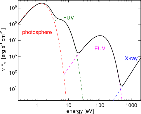 radiation consists of a photospheric, a FUV, an EUV and an X-ray