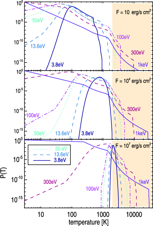 Present radiative transfer models of the PAH emission from dusty disks consider only the stellar radiation field and no additional EUV or X-ray component (Habart et al. 2004; Geers et al. 2006; Visser et al. 2007; Dullemond et al. 2007a). Their hard photons could, according to laboratory experiments (Ruhl et al. 1989; Leach et al. 1989a,b; Jochims et al. 1994) and theory (Omont 1986; Tielens 2005; Rapacioli et al. 2006; Micelotta et al. 2010a,b), destroy PAHs. We discuss below their impact on the PAH abundance in the disks of T Tauri stars.