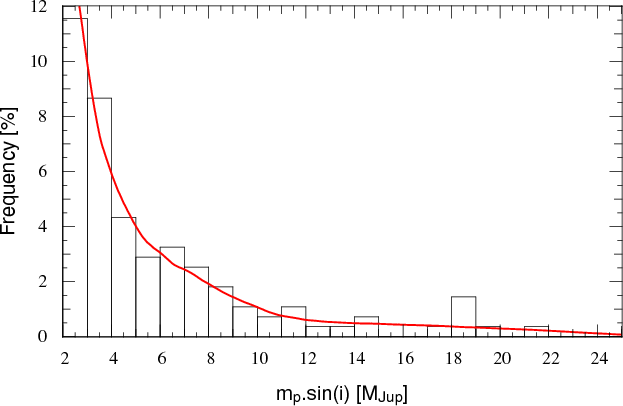 Fig. 5, with no cut-off or change of distribution morphology up to 25 Jupiter masses.