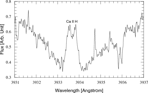 which is confirmed by a relatively strong CaII-H re-emission that can be seen in the spectra as illustrated in Fig. 1.