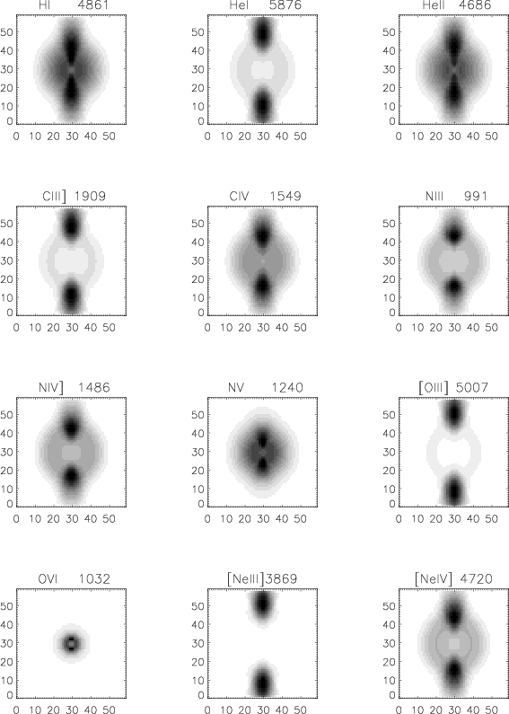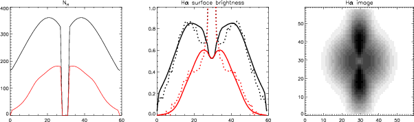- For comparison with the model, we have symmetrised the observed nebular surface brightness.