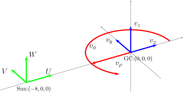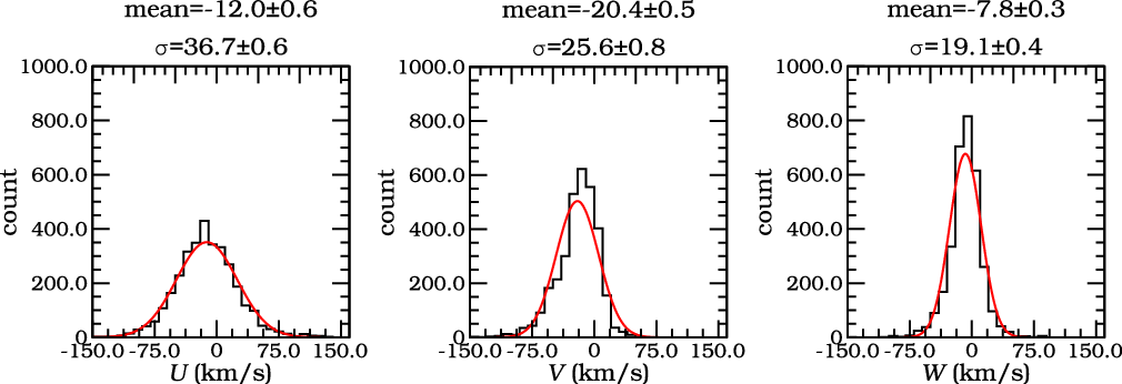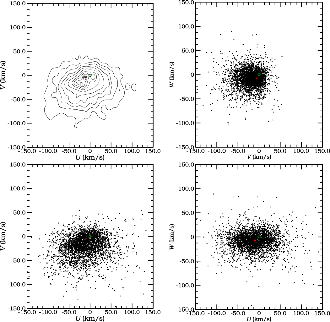 velocity components of nearby dwarf stars are apparent in our dataset,