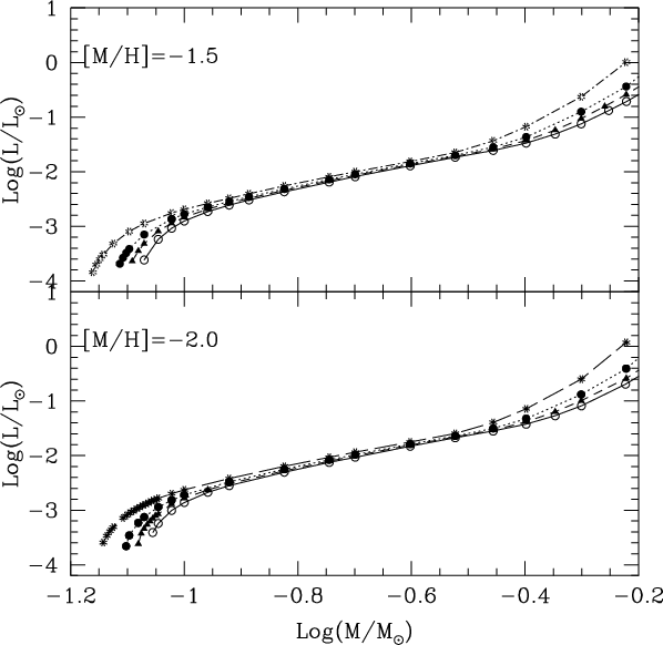 masses and the main sequence down to the hydrogen burning minimum mass,