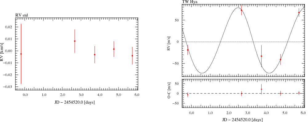 - Note that the RV variations eventually induced by planets are about 100 m/s and thus much smaller than the line's FWHM. As a consequence, these small amplitude fluctuations can be ignored at this stage.