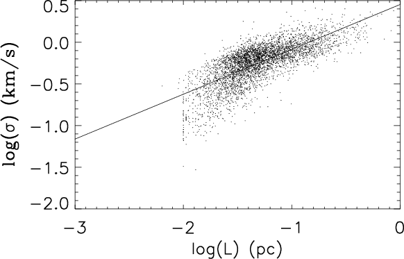 The plan of the Paper is the following. In the second section we describe the numerical experiments we perform, in the third section we present the global properties of the numerical simulations including the density probability distribution function (PDF) and the Mach number-density distribution. The fourth section is devoted to the clump properties including their mass spectrum, velocity dispersion and mass-size relation. In the fifth section we summarize our results and conclude the Paper.