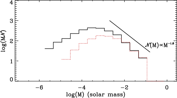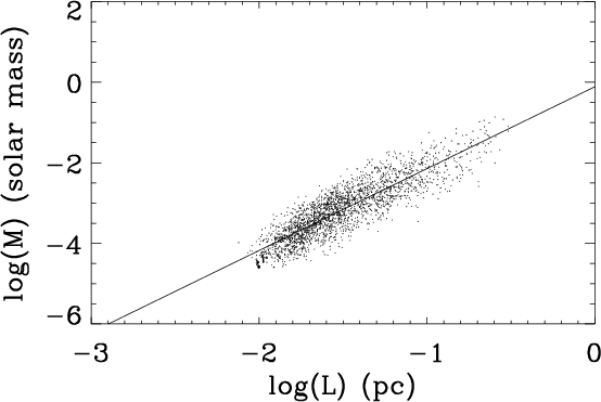 their statistical properties such as the mass spectrum, mass-size
