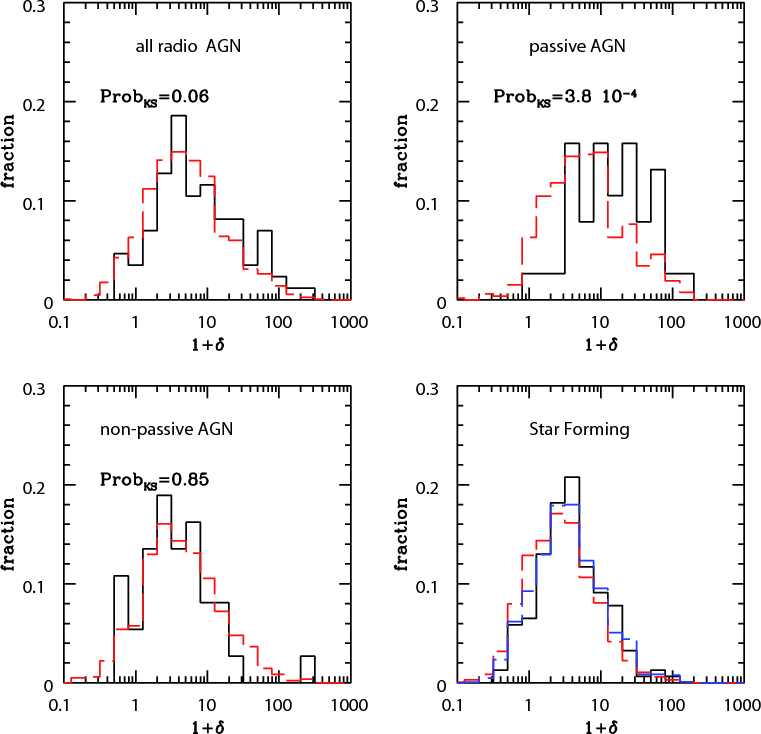 the groups hosting the radio sources. Passive AGN in overdensities tend