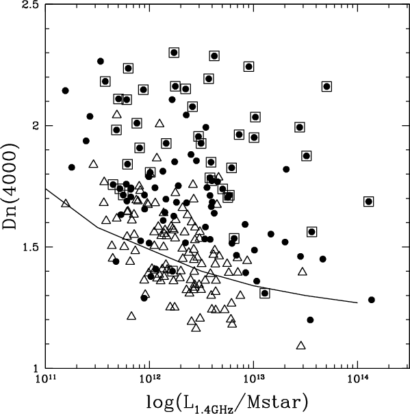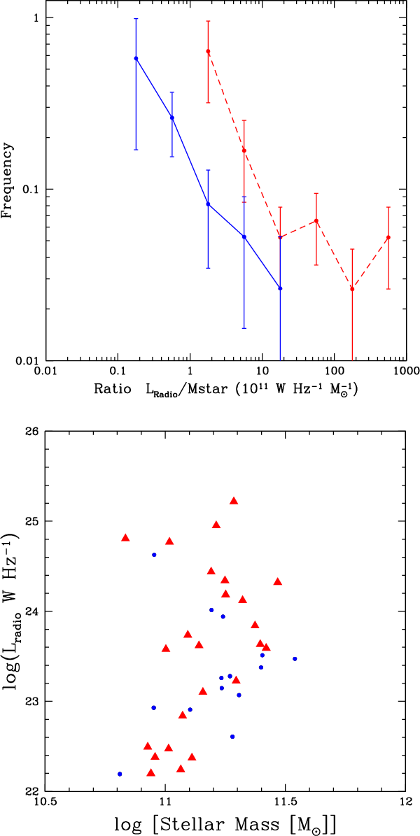 Radio sources have been traditionally classified into two broad classes depending on their emission mechanism: AGN-driven emission has been proposed for early-type galaxies, while a star-forming origin of the radio power has been invoked for late-type galaxies (Condon 1992). However, not all optical galaxies exhibit radio emission (at least at the depth of current surveys) and it is important to investigate the physical mechanism that triggers this emission. For AGN-induced activity, the difference between radio-quiet and radio-loud galaxies is naturally connected to the availability of fuel for the central engine, the black hole mass, and its emission efficiency (see e.g., Shabala et al. 2008, and references therein), while for star-forming objects it is closely related to the strength of the star-formation episode.