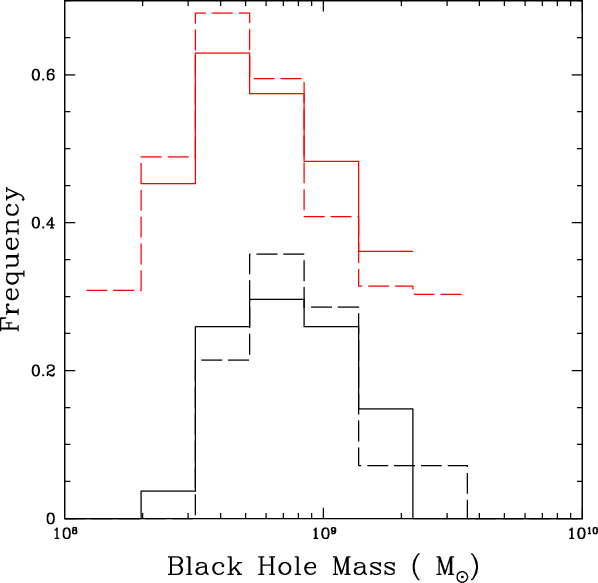 environments. Since the black hole mass distribution is similar in both