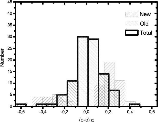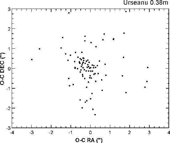 Figure A.8: Urseanu 0.38 m: (o-c) residuals for 95 positions of 21 NEAs observed by EURONEAR in 18 runs. |