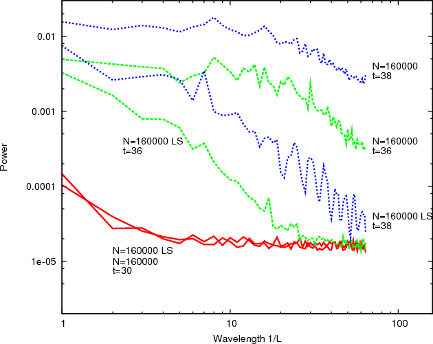 ), the spectra begin to show a systematic trend towards more structure on smaller scales for runs with larger N.