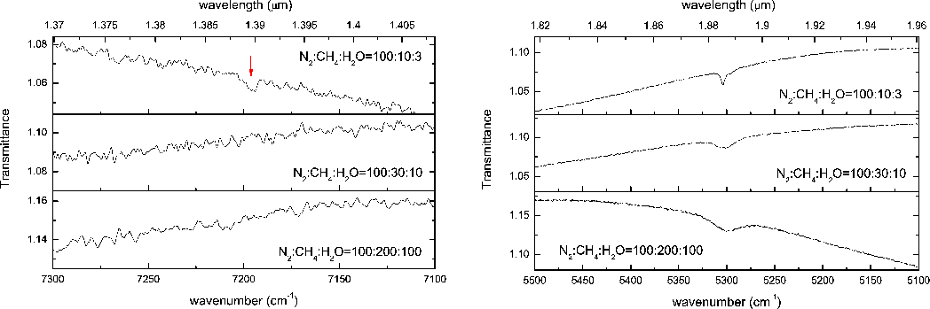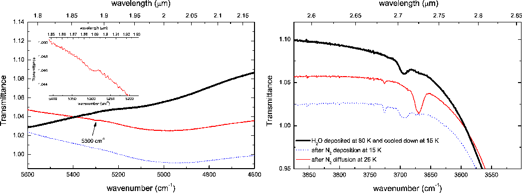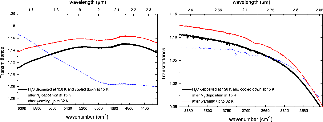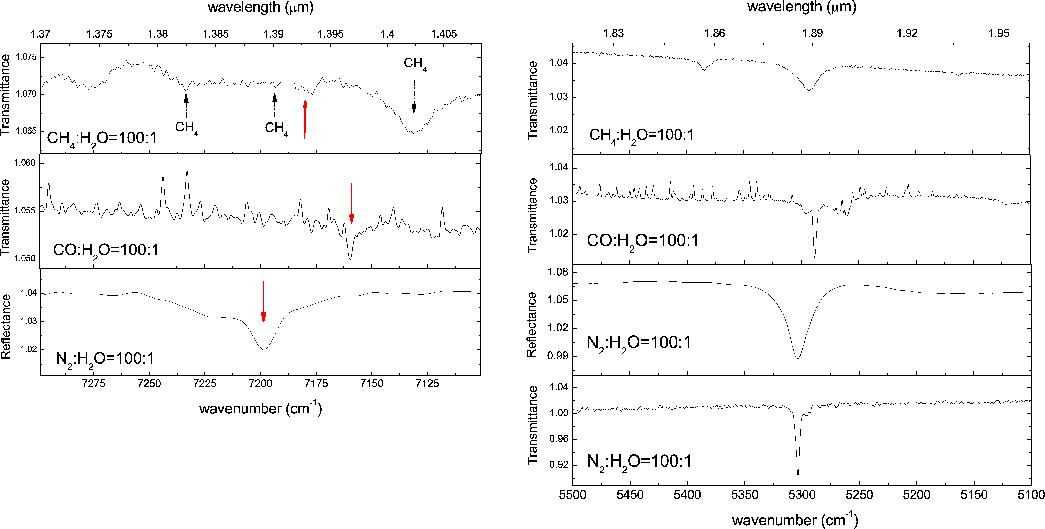 transmittance and reflectance spectra of the considered icy samples in