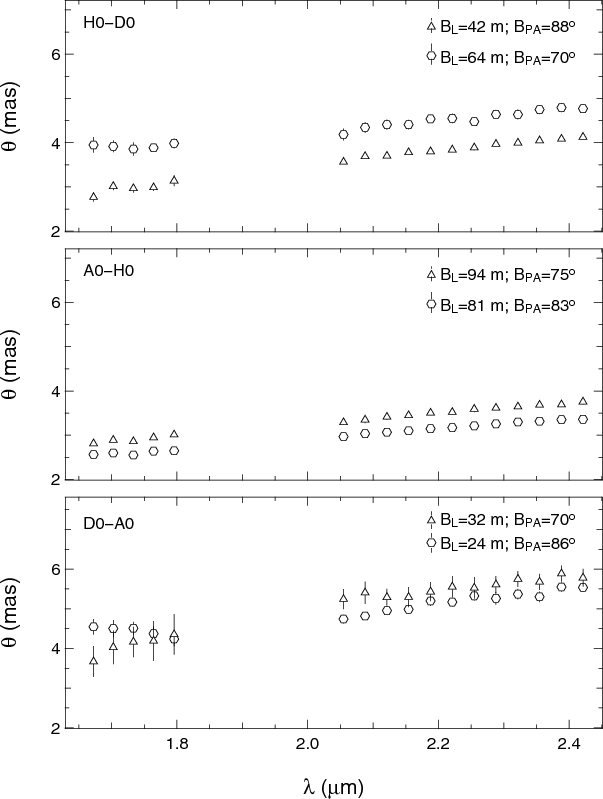 with the AMBER instrument at the VLTI. The observations cover a range