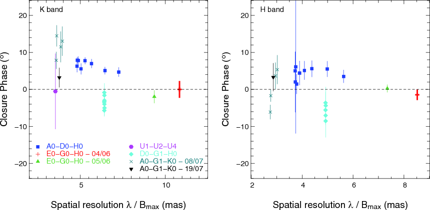 resolved at the sub-AU spatial scale and closure phase measurements