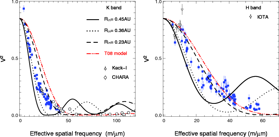 - Based on AMBER observations collected at the VLTI (European Southern Observatory, Paranal, Chile) with Arcetri Guaranteed Time program 081.C-0124, LAOG Guaranteed Time program 081.C-0794 and open time programs 081.C-0851, 081.C-0098.