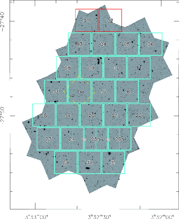 ISAAC pointings were laid out to assemble a mosaic of the CDF-S