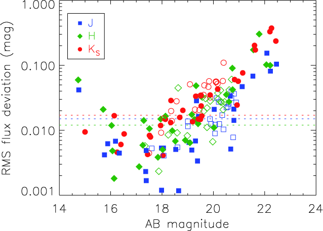 magnitudes in flux up to J=25.25, H=25.0,