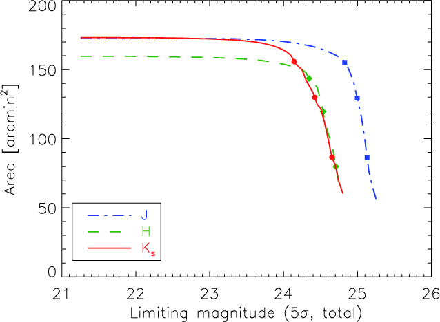 survey covers an area of 172.5, 159.6 and 173.1 arcmin2 in the J, H, and