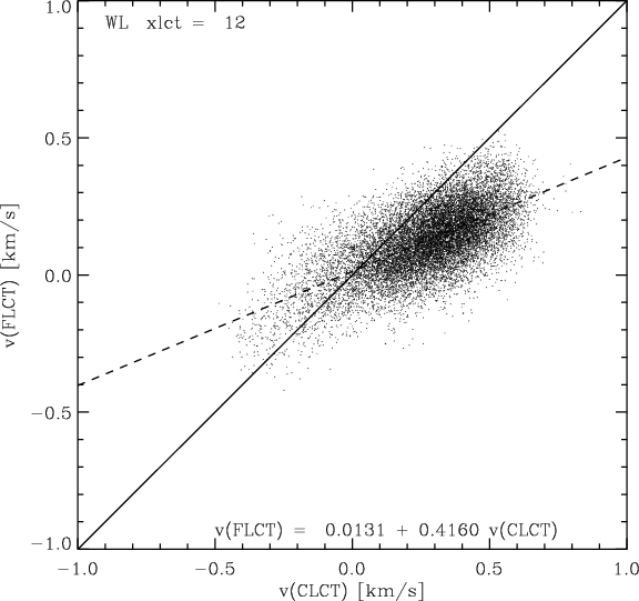 radial velocities from FLCT versus CLCT, restricted to the moat
