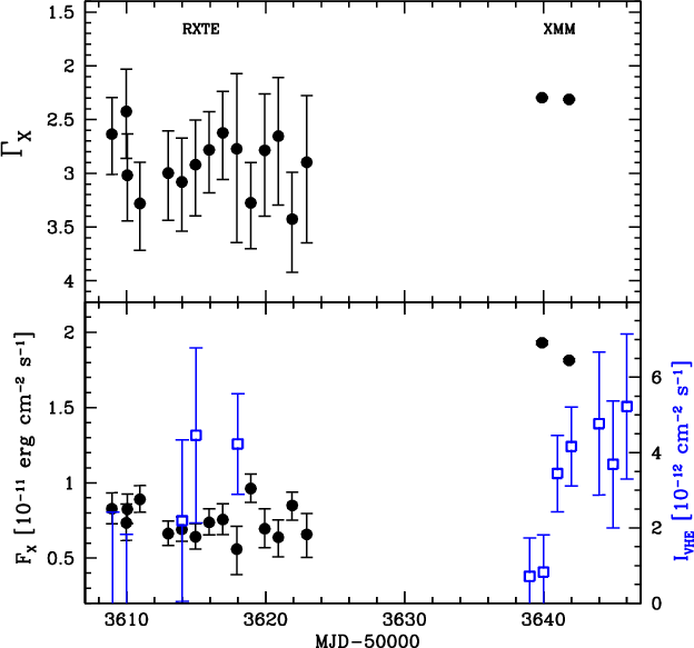 - If the VHE electrons were emitting by synchrotron at energies well below the X-ray range, they would correspond to the synchrotron peak, around 1016 Hz. Since the SSC scattering at the peak would be in the Thomson regime for this frequency, the gamma-ray peak should then be inside the VHE band, which is not observed.