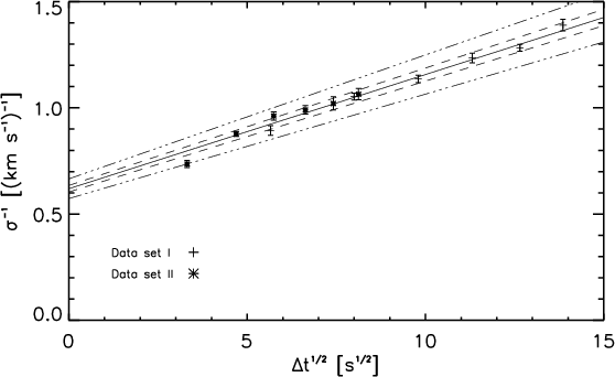 We used two different data sets near the solar disc centre obtained by the solar optical telescope (SOT; for a description see Ichimoto et al. 2004; Suematsu et al. 2008) on board the Hinode satellite (Kosugi et al. 2007). SOT has a 50 cm primary mirror limiting the spatial resolution by diffraction to about 0.2 arcsec. Data set I, taken on March 10, 2007, has a field-of-view (FOV) of 55.8 arcsec by 111.6 arcsec with a spatial sampling of 0.108 arcsec per pixel. The complete time series covers a period of approximately 5 h and 40 min, consisting of 645 G-band images recorded with a temporal resolution of about 32 s. Data set II, from February 19, 2007, has a FOV of 27.7 arcsec by 27.7 arcsec with a spatial sampling of 0.054 arcsec per pixel and consists of 756 exposures over a period of roughly 2 h and 20 min. Data set II has a better temporal resolution of about 11 s. Both data sets cover a quiet sun FOV and were fully calibrated and reduced by Hinode standard data reduction algorithms distributed under solar software (SSW).