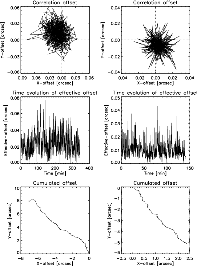 pixels). The offsets versus time is plotted in the second row of Fig. 1. These agree with the SOT specified and measured image stability (Ichimoto et al. 2008).