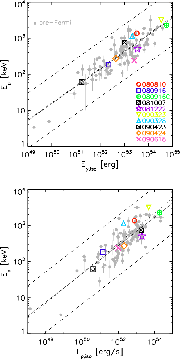 The debate about the reality of these correlations is strong, since some authors have pointed out that they can be the result of observational selection effects (Nakar & Piran 2005; Band & Preece 2005; Butler et al. 2007; Butler et al. 2009; Shahmoradi & Nemiroff 2009), while others argue that selection effects, even if surely present, play a marginal role (Ghirlanda et al. 2005; Bosnjak et al. 2008; Ghirlanda et al. 2008; Nava et al. 2008; Krimm et al. 2009; Amati et al. 2009).