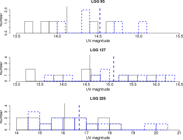 The paper is arranged as follows. Section 2 describes the sample and its properties, as compiled from the current literature. Sections 3 presents the UV observations and, for LGG 225, the SDSS observations. The UV morphology and the optical and UV photometry are presented in Sect. 4. In Sect. 5 we use synthetic galaxy populations models to interpret the energy distribution, estimate ages and masses of group galaxies and compare them to the groups dynamical properties. Discussion and conclusions are given in Sect. 6. H0 = 75 km s-1 Mpc-1 is used throughout the paper.