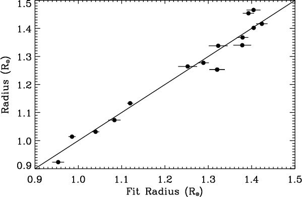 targets. In particular we determine the large separation and radius of
