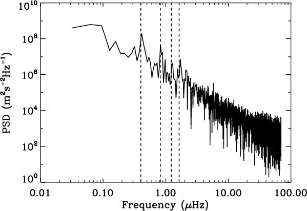 Hz. A Lomb-Scargle algorithm is used depending on the regularity of the sampling rate of the time series.