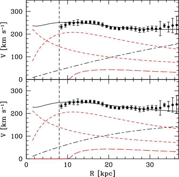 and constant-density core mass models to very large galactocentric