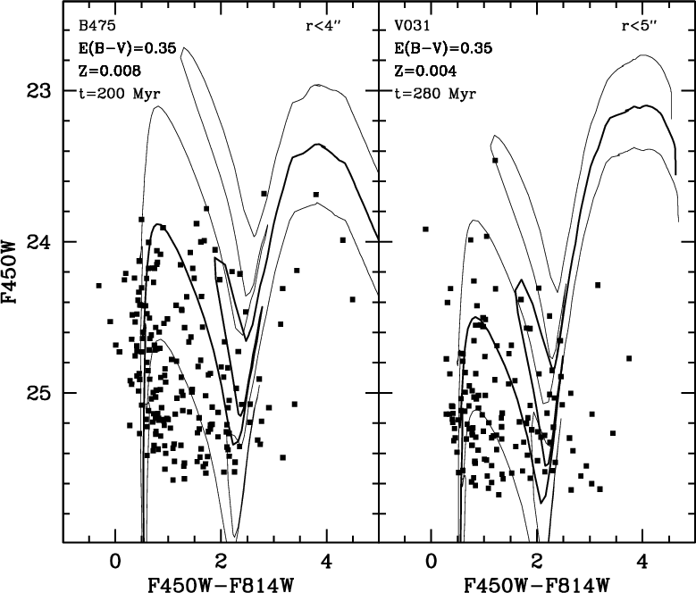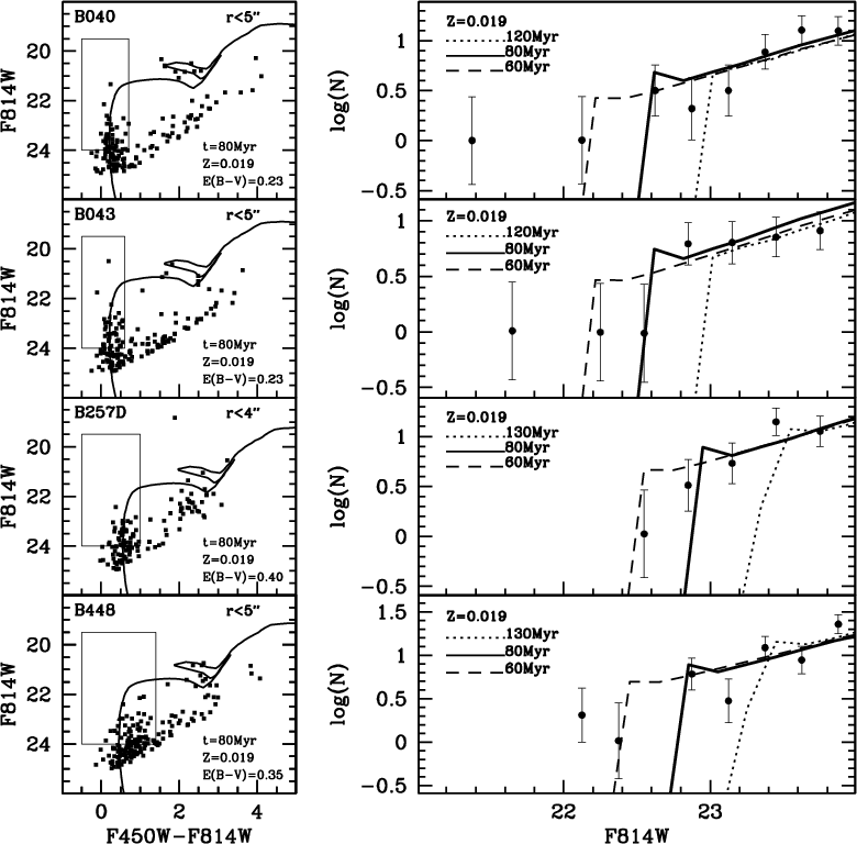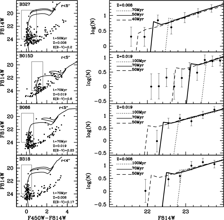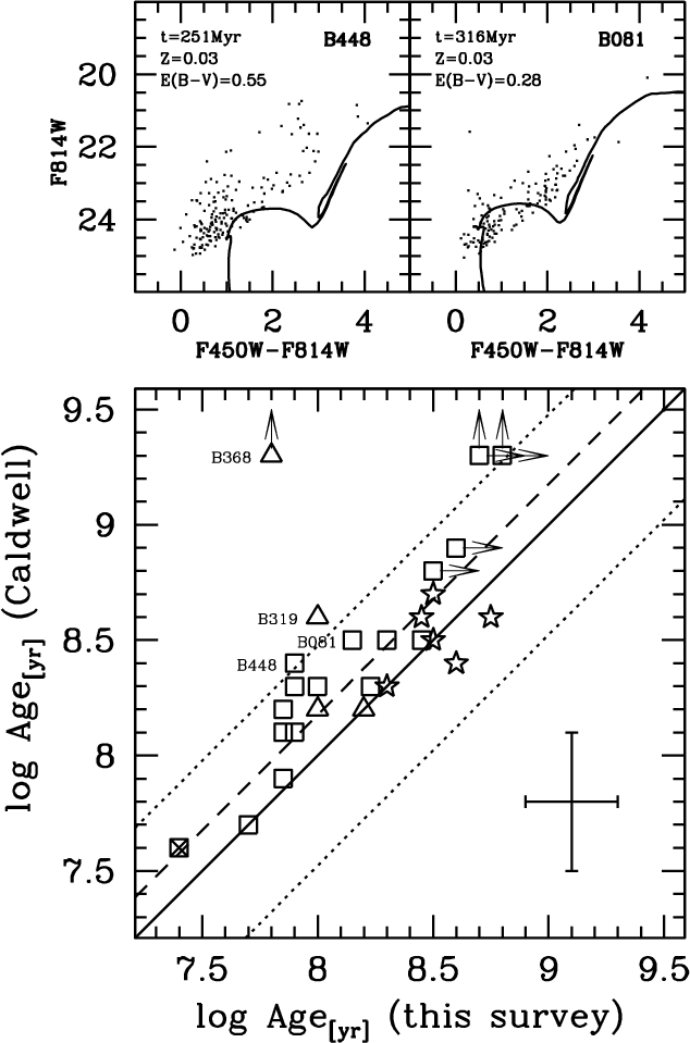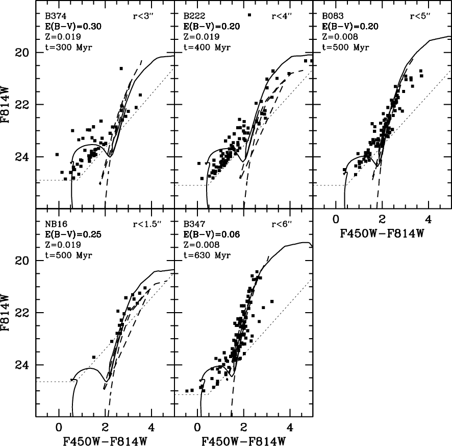 500 Myr (lower limits). By including ten other YMC with HST