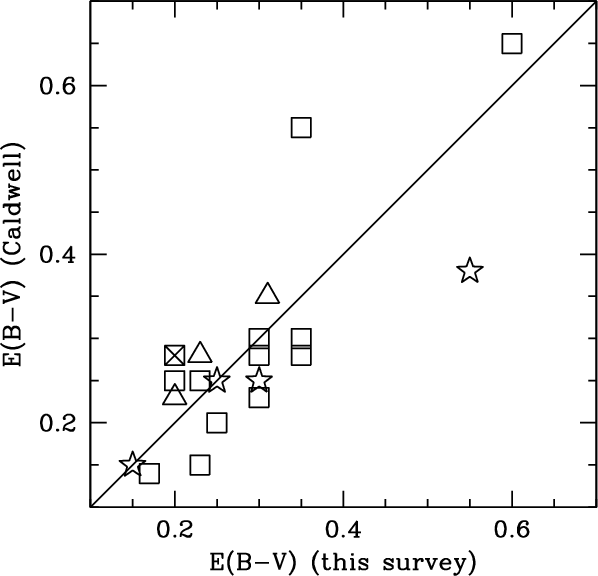 sets of artificial stars experiments. The reddening, age, and