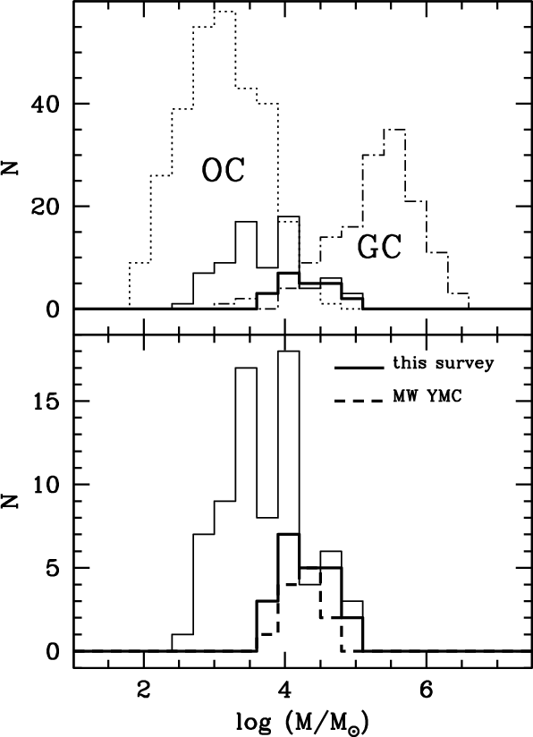 masses significantly higher than Galactic open clusters (OC) in the