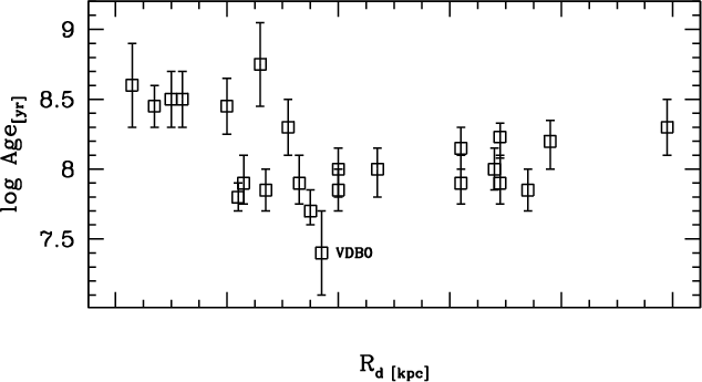 age uncertainties are relatively large, i.e. 0.5-0.6 dex in