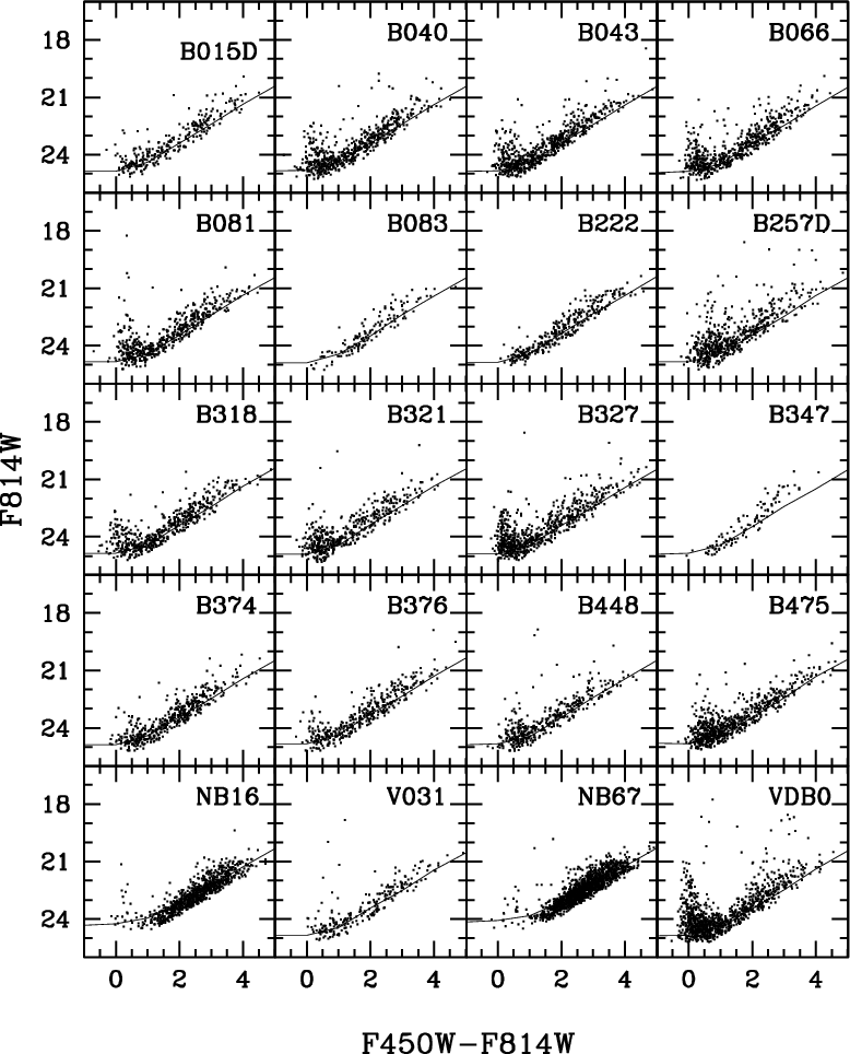 stars was obtained for all the WFPC2 images of the target clusters, and