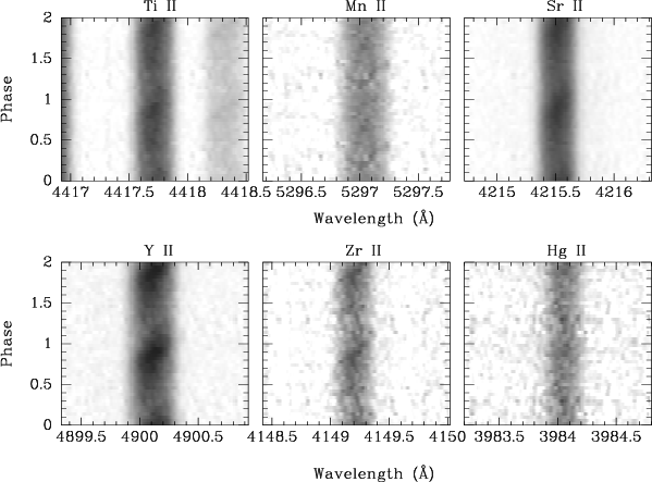 e.g., overabundances of Hg, Mn, Ga, Y, Cu, Be, P, Bi, Sr, Zr,