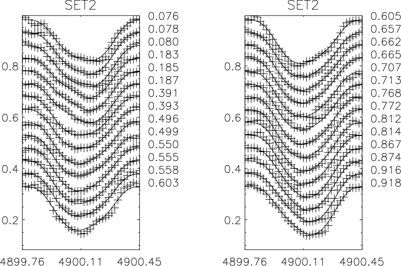 | Figure A.1: Phases of the HD 11753 observations for both sets (set1 on the left). |