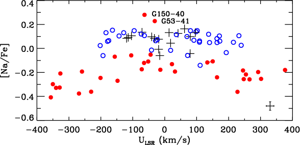 Figure 6: [Na/Fe], [Cr/Fe], and [Ni/Fe] as a function of [Fe/H]. The same symbols as in Fig. 1 are used. |