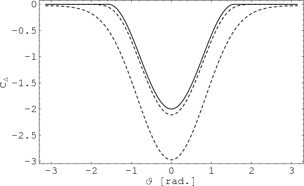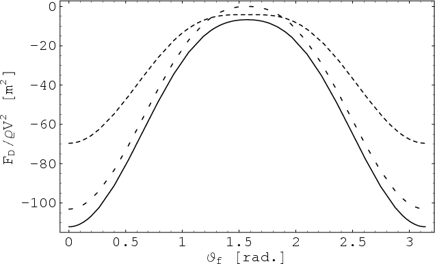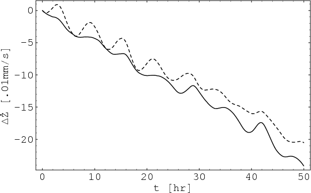 where the first component is generated using Kepler acceleration and the full outgassing pressure model (solid curve of Fig. 17), or Kepler acceleration and the oblateness parameter c20=0.088 (arbitrary choice) of Eq. (54) (dashed curve of Fig. 17). From the simulations we found that the the outgassing pressure prefactor