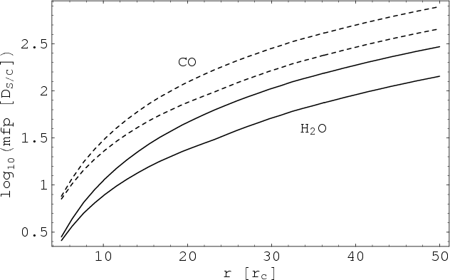 The present results have only been established for probe distances between 5 and 50 mean comet radii.