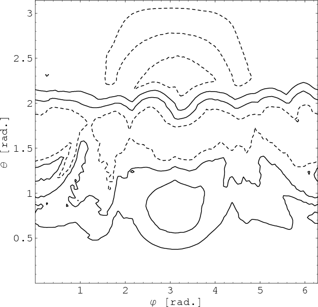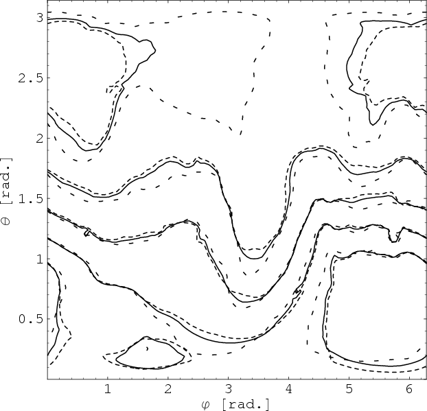 to see if one can discern the c22 induced variations. We compared the difference in the Doppler signal between a full outgassing model and the mean outgassing model (solid curve of Fig. 18) to the result when the full model is extended to include the c22 component (dashed curve of Fig. 18). Again, the pressure field prefactor