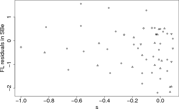 In contrast to what we noted for fundamental plane residuals in