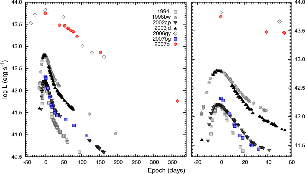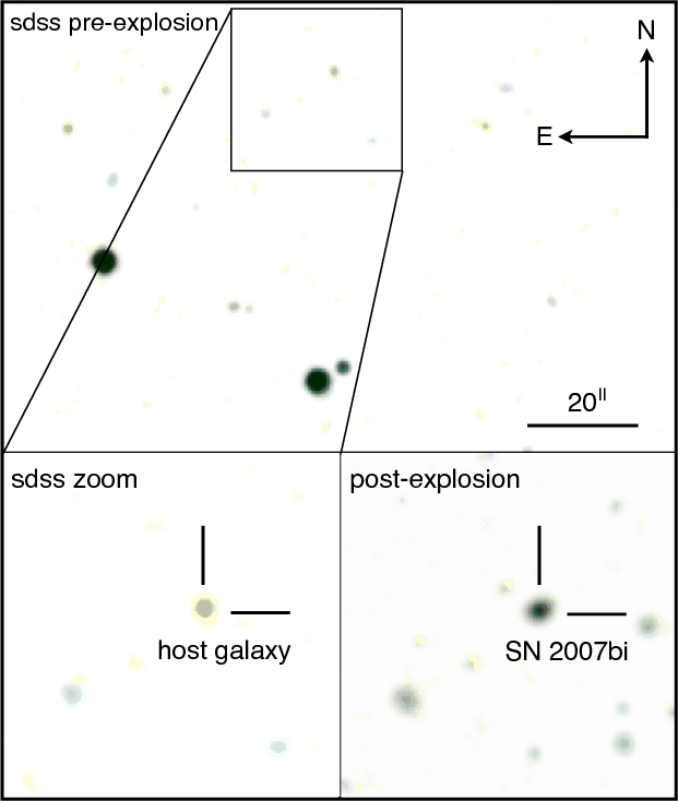 SN 2007bi and their host galaxies. Both supernovae were