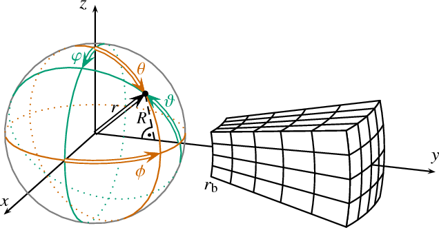 takes the jet's axis y as the polar axis, we introduce another spherical