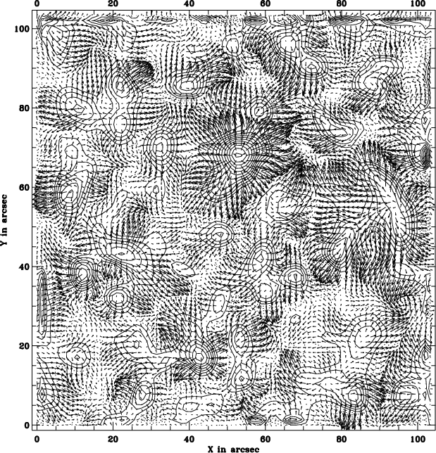 We determined the horizontal velocity field for various time averages from this set of data, using our algorithm of granule tracking CST (Rieutord et al. 2007). We recall that because of the nature of granules their motion is representative of the large-scale plasma flow only for length scales larger than 2.5 Mm and time scales longer than 30 min. These limits have been derived from numerical simulations by Rieutord et al. (2001) and are confirmed by these data (see below).