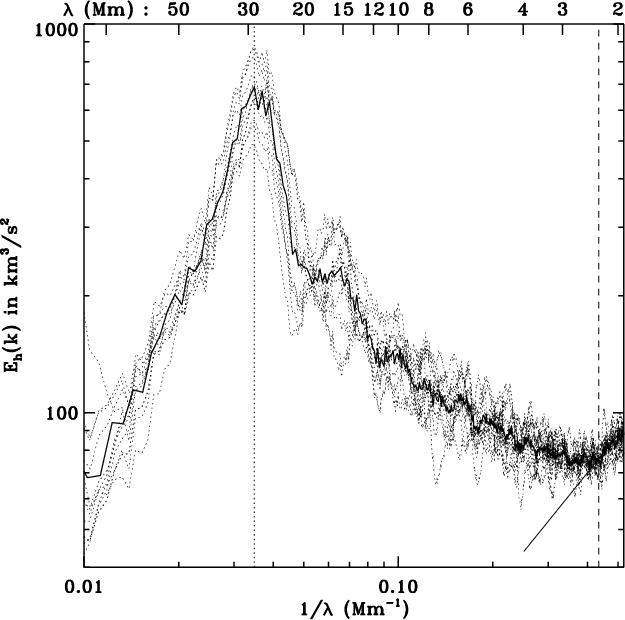 spectral power law. Still in the 2.5-10 Mm mesoscale range, we