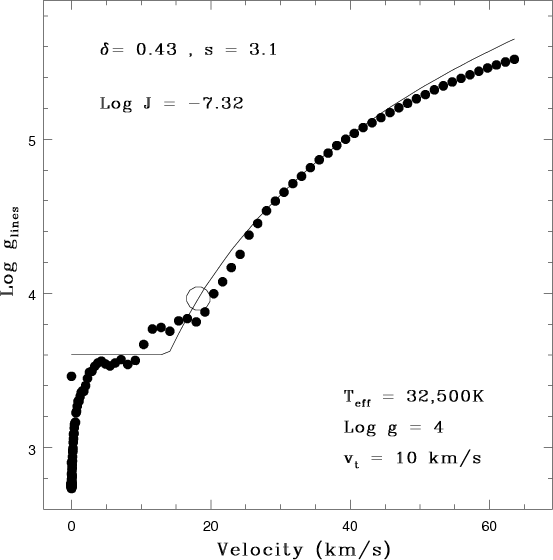 A second unstated assumption is that after achieving supersonic velocities matter continues to be accelerated at least until local escape velocity is reached, so that no matter falls back onto the RL. Again, for the models of L07a, this is confirmed by the matching exterior solutions reported in L07b. But this assumption might well be violated for some late-type O stars (Howk et al. 2000).