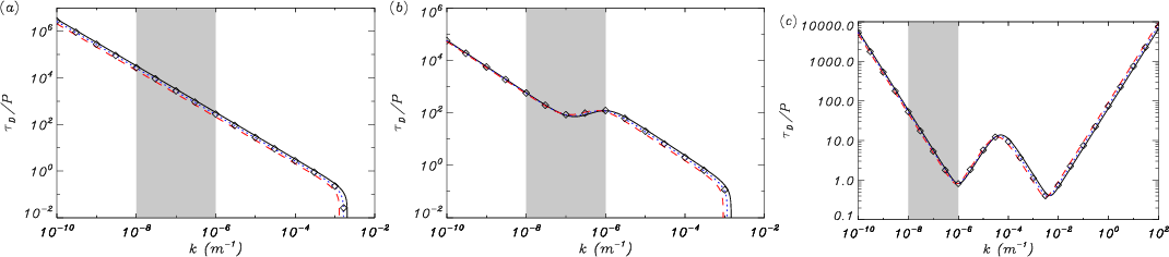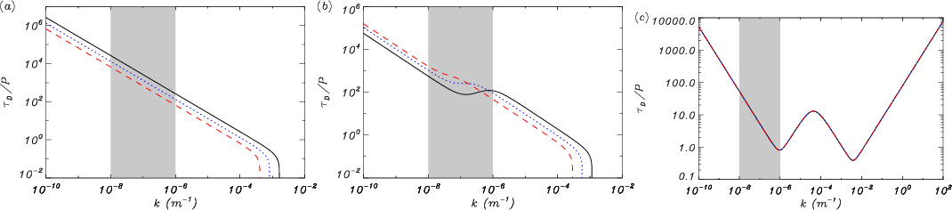 is proportional to B02 (see Eqs. (15) and (16)). For this reason, the Alfvén mode is more attenuated as B0 grows, since Cowling's diffusion is more efficient. The fast wave shows a similar behavior for large k, whereas for small k,